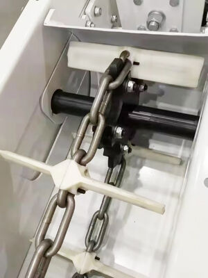 Οι κόκκοι και τα κόκκινα υλικά μετακινούνται από ξυράφια ή λεπίδες που τοποθετούνται στην αλυσίδα έλξης.