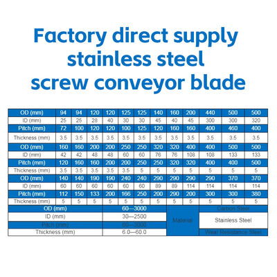 Προσαρμοσμένες σπειροειδείς λεπίδες από ανθρακούχο χάλυβα/ανοξείδωτο χάλυβα Ανθεκτικές στη φθορά και τη διάβρωση Απαραίτητες για βιομηχανική μεταφορά Κατάλληλες για βιομηχανίες τροφίμων/χημικών Οικονομική μεταφορά Ασφαλής