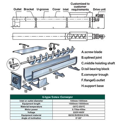 Κατασκευαστής προσαρμοσμένων κοχλιοφόρων μεταφορέων λάσπης τύπου U με άξονα από ανοξείδωτο χάλυβα και ανθρακούχο χάλυβα, και άξονες χωρίς άξονα από ανοξείδωτο χάλυβα για βιομηχανικές εφαρμογές.